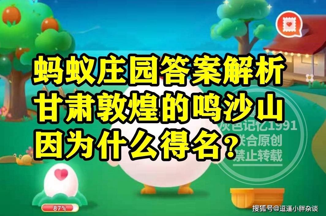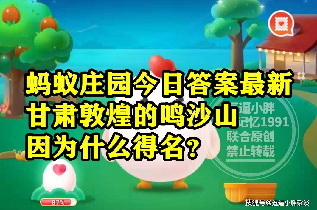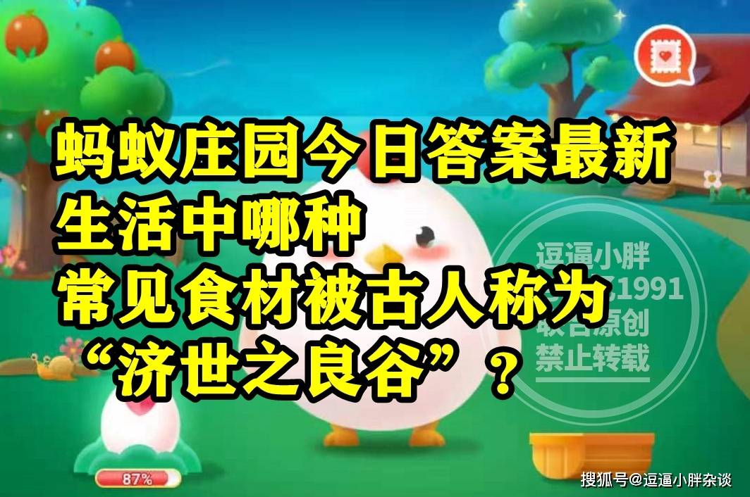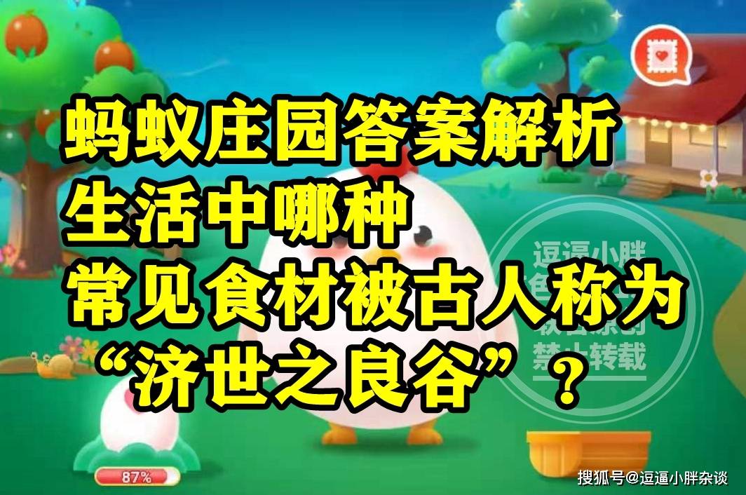 还不清楚,生活中哪种常见食材被古人称为“济世之良谷”?甘肃敦煌的鸣沙山因为什么得名?答案的同学,选项中分别都有两个选择,还不清楚,被古人称为济世之良谷是哪种食材?鸣沙山是因为啥而得名?答案的同学,下面就一起来看看,蚂蚁庄园题目:被古人称为济世之良谷是哪种常见食材呢?甘肃敦煌鸣沙山是因为啥而得名呢?的正确答案解析吧。