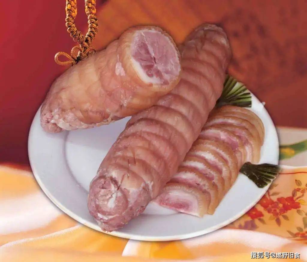 捆肘卷主要是用猪肘肉做成的,它采用了捆绑的制作方式,使其肉质更紧实,最后经过蒸煮而成,吃起来质地脆嫩,咸鲜可口。