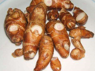 材料:鸡一只、沙姜适量(如图)、葱少许;