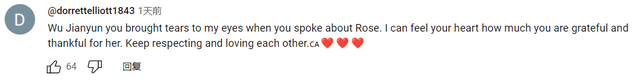 吴建云,当你谈到罗斯时,你让我潸然泪下,我能感受到你对她的感激之情。继续相亲相爱吧。
