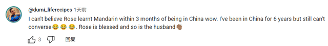 哇,真不敢相信,罗斯来中国 3 个月就学会了普通话。我来中国 6 年了还不会说呢。玫瑰有福气,丈夫也有福气!