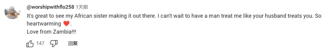 很高兴看到我的非洲姐妹在外面闯荡。我渴望有一个男人对我能像你丈夫对你那样。太感人了。