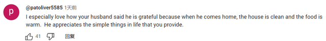 我特别喜欢你丈夫说他很感激你,因为当他回到家时,房子是干净的,饭菜是热乎的。他非常感激你给生活带来的简单纯粹。