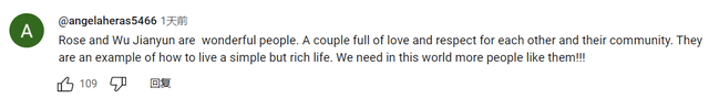 罗斯和吴建云很棒,彼此之间和对乡亲都充满了爱与尊重。他们生活简单却不失精彩,为人们树立了榜样。在这个世界上,我们需要更多像他们这样的人。