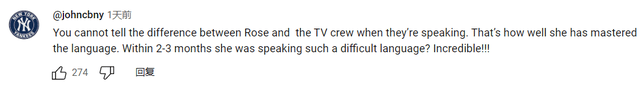 当罗斯和电视台工作人员说话时,根本分辨不出他们语言之间的区别,她掌握中文已经到了非常熟练的程度。两三个月内,她就能说这么难的语言?太不可思议了。