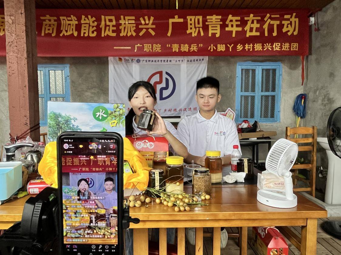 “大家好,欢迎大家来到‘青骑兵’小脚丫乡村振兴促进团的直播间。我们现在位于广东省潮州市潮安区赤凤镇水口村蓝龙主题餐厅。今天我们将为大家介绍水口村以及特色农产品,让大家更加了解这里。”这是“青骑兵”小脚丫团队成员小美、小帅的直播开场白。今年暑期,广东职业技术学院“青骑兵”小脚丫乡村振兴促进团来到潮州市赤凤镇进行暑期“三下乡”社会实践。“青骑兵”小脚丫团队成员化身成一个个“小主播”,宣传水口村文化,介绍特色农产品,以实际行动助力乡村振兴。