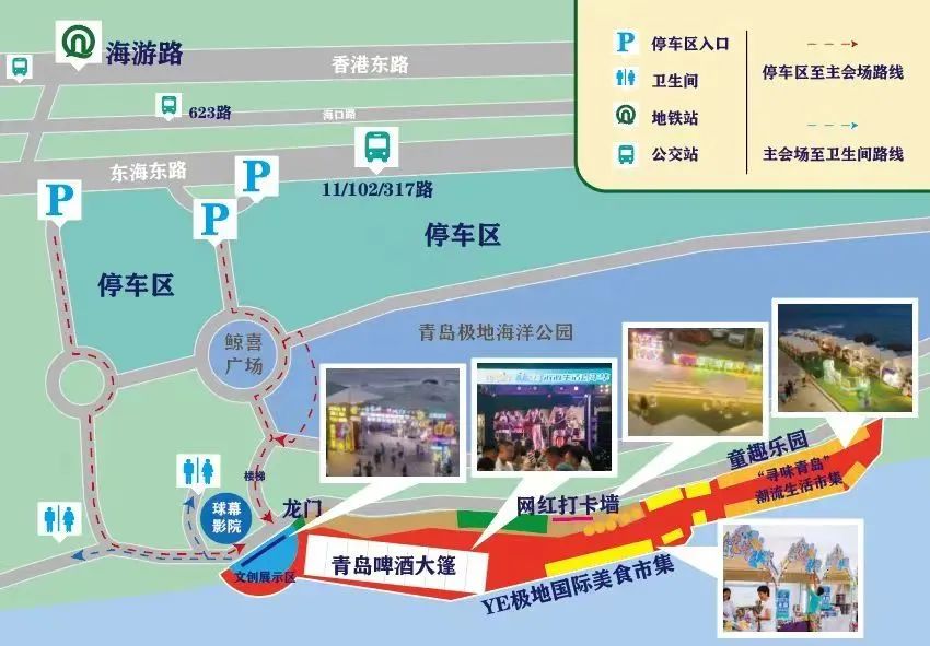 极地海洋公园在啤酒节期间还开启夏日限定极地夜场,每晚7点半,青岛首个360°球幕影院准时上演绚丽夺目的霓虹灯光秀,还有青啤大篷里的无界音乐演出,带来视听双重享受。
