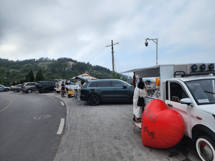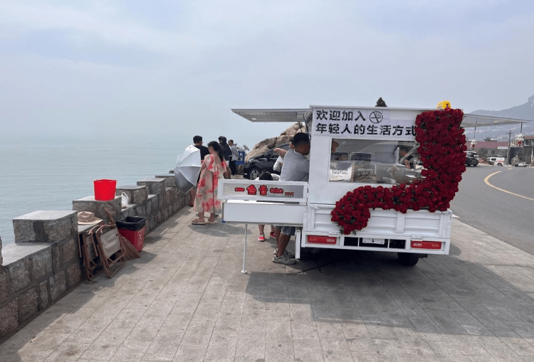 游客的聚集也引来了商贩经营,他们瞅准了商机采取各种方式占用停车位兜售商品。一位游客借“文明青岛随手拍”的方式反映问题,她说:“这是网红打卡地,非常多的外地游客都会来这里拍照,但是让非法摊位给占领了。本想拍下美丽的风景,不小心框进了摆摊商贩,好心情没了”。