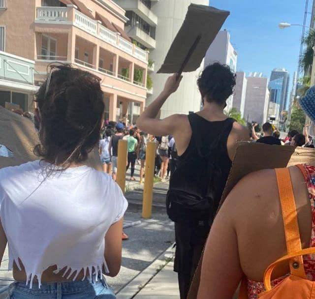 当地时间5月31日,迈阿密街头举行了大规模的抗议示威活动,为遭到白人警察跪杀的非洲裔男子乔治·弗洛伊德发声。而在人群中,《迈阿密先驱报》记者比安卡·帕德罗·奥卡西奥(BiancaPadróOcasio)发现了一对明星情侣。