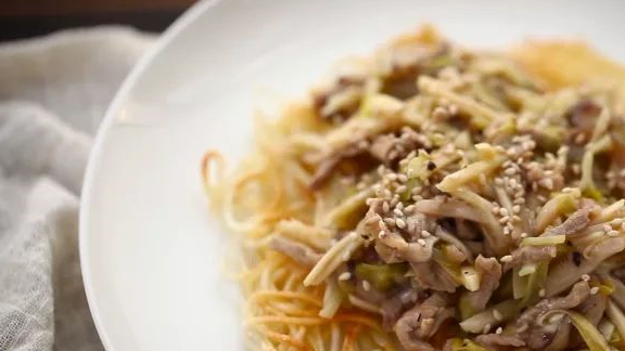 那这个两面黄该怎么做呢?其实,其制作还是相当费事的,我们需要将面条的两面都进行炸成金黄色,然后再从锅里捞出来后放在盘子上,再浇上制作好的浇头和卤汁,等到面条吸足汁后味道就会可口。