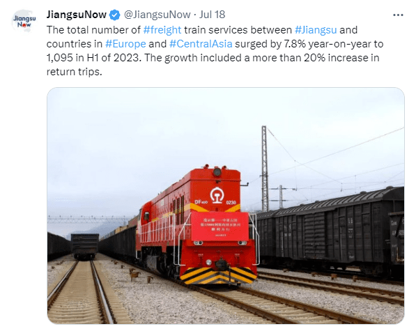 上半年,江苏全省实现生产总值60465.3亿元,同比增长6.6%;江苏中欧(亚)班列累计开行1095列,同比增长7.8%。在一组组亮眼的数据中,海外网友了解到江苏强劲蓬勃的经济活力。