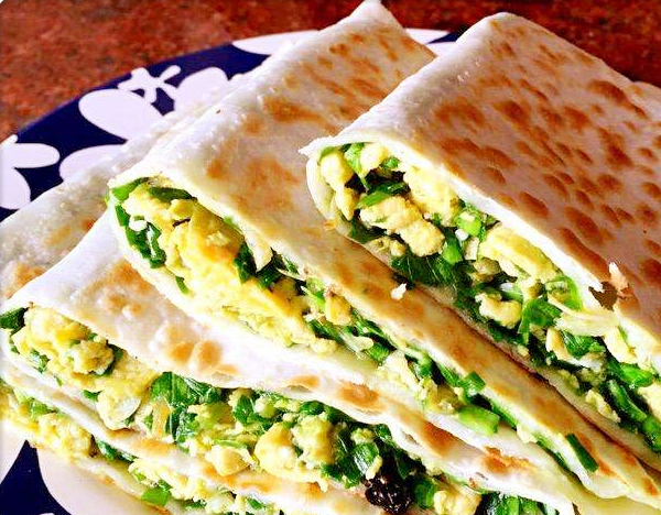 用两张薄饼,包入新鲜韭菜、鸡蛋为主放在平底锅上炕制而成的。火候掌握的好,花匀微黄,入口软筋,透着韭头特有的香。是中国北方地区非常流行的传统小吃,在有些地区也是节日食品。韭菜盒子表皮金黄酥脆,馅心韭香脆嫩,滋味优美,是适时佳点。