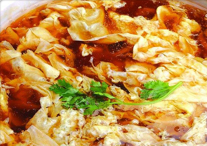 酸辣乌鱼蛋汤是用乌鱼蛋做成的一道美食,是一道特色传统名菜。在豫菜,鲁菜中均有此菜,乌鱼蛋并非蛋,乃是雌性墨鱼的卵腺体,沿海均产。