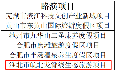 全省五市共6个项目进行现场路演,我市“皖北龙脊线生态旅游项目”成为皖北唯一入选路演环节的项目,并期待与相关投资公司或头部文旅企业合作。