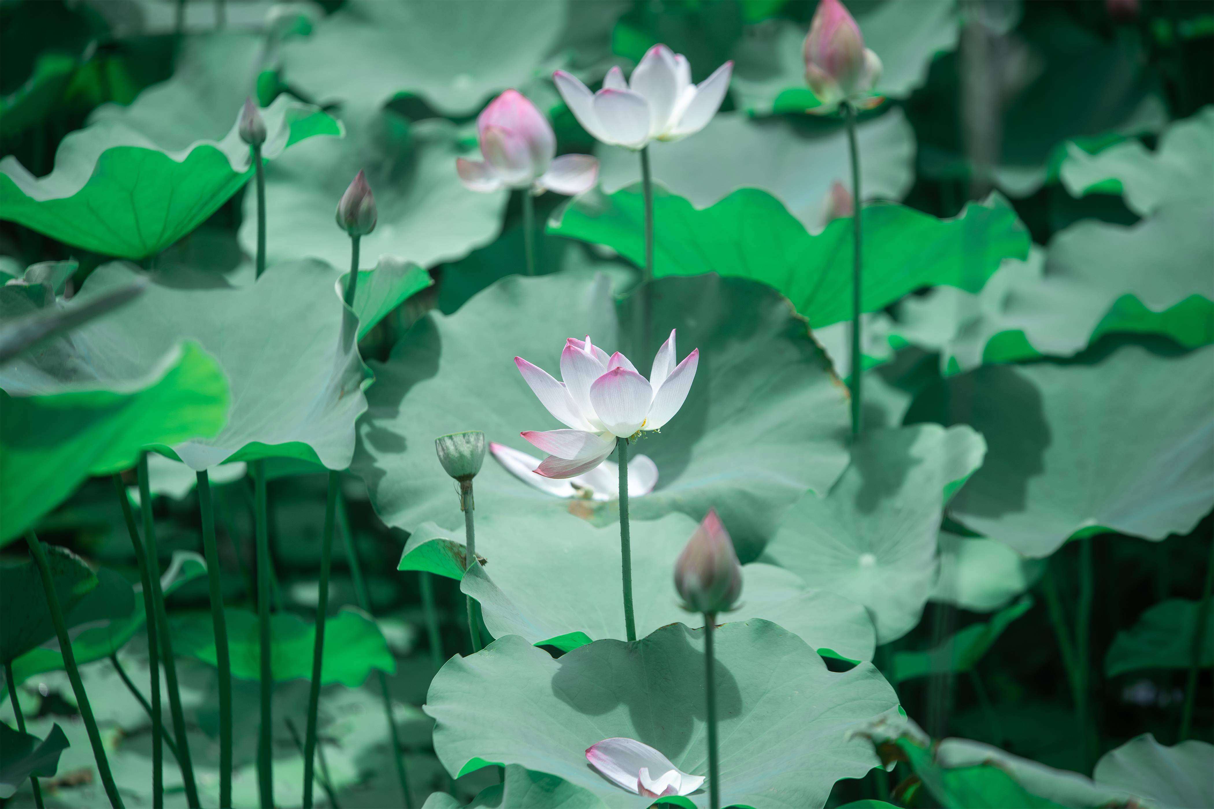 普陀山禅寺深幽,松柏青翠,荷莲生香,修竹婀娜,殿宇庄严,廊下清风,心静凉生。