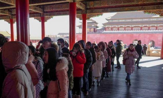 起初只是一些游客在途径这里的时候,好奇门后面的景色是怎样的,就靠在门缝上看了一眼。可这个行为引起了后面游客的注意,就越来越多人在经过太和门的时候都爱看上一眼。