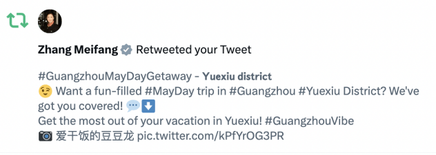 此外,与海外平台上的知名大V、摄影师等进行互动。通过联动活动和内容交流,扩大了广州文旅的知名度和影响力,提升了广州文旅海外社媒矩阵的曝光度和粉丝数量。