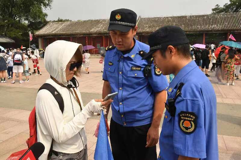 7月26日,海淀区青龙桥街道综合行政执法队的执法人员来到颐和园东宫门。上午9时,公园周边的交通流量已明显增加,游客量有所提升,售票窗口排起了队。“请问北宫门怎么走啊?”“公园年卡怎么使用呢?”颐和园东宫门外广场上,不少游客找到身穿制服的执法人员寻求帮助。青龙桥队的执法人员们在为游客解答疑问的同时,还要开展交通秩序疏导、城管法规宣传等工作,对发现的违法、不文明现象及时制止。