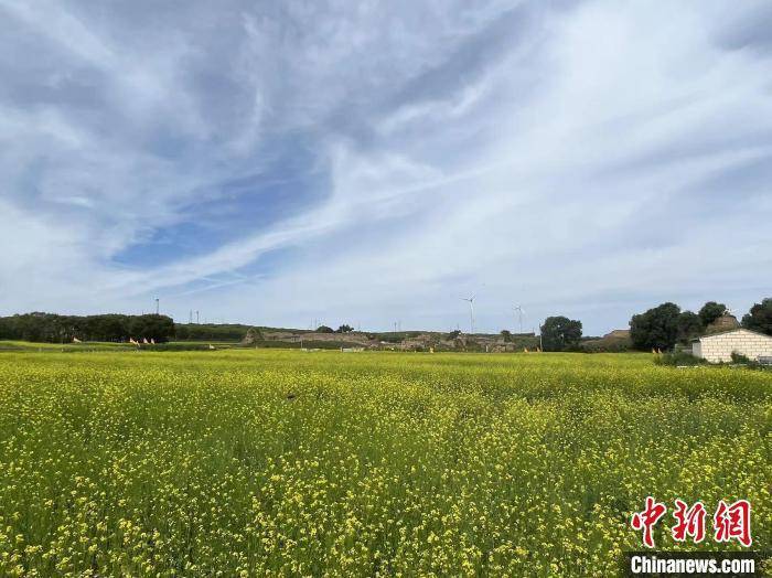 山西朔州,长城脚下的油菜花稠密。范丽芳摄
