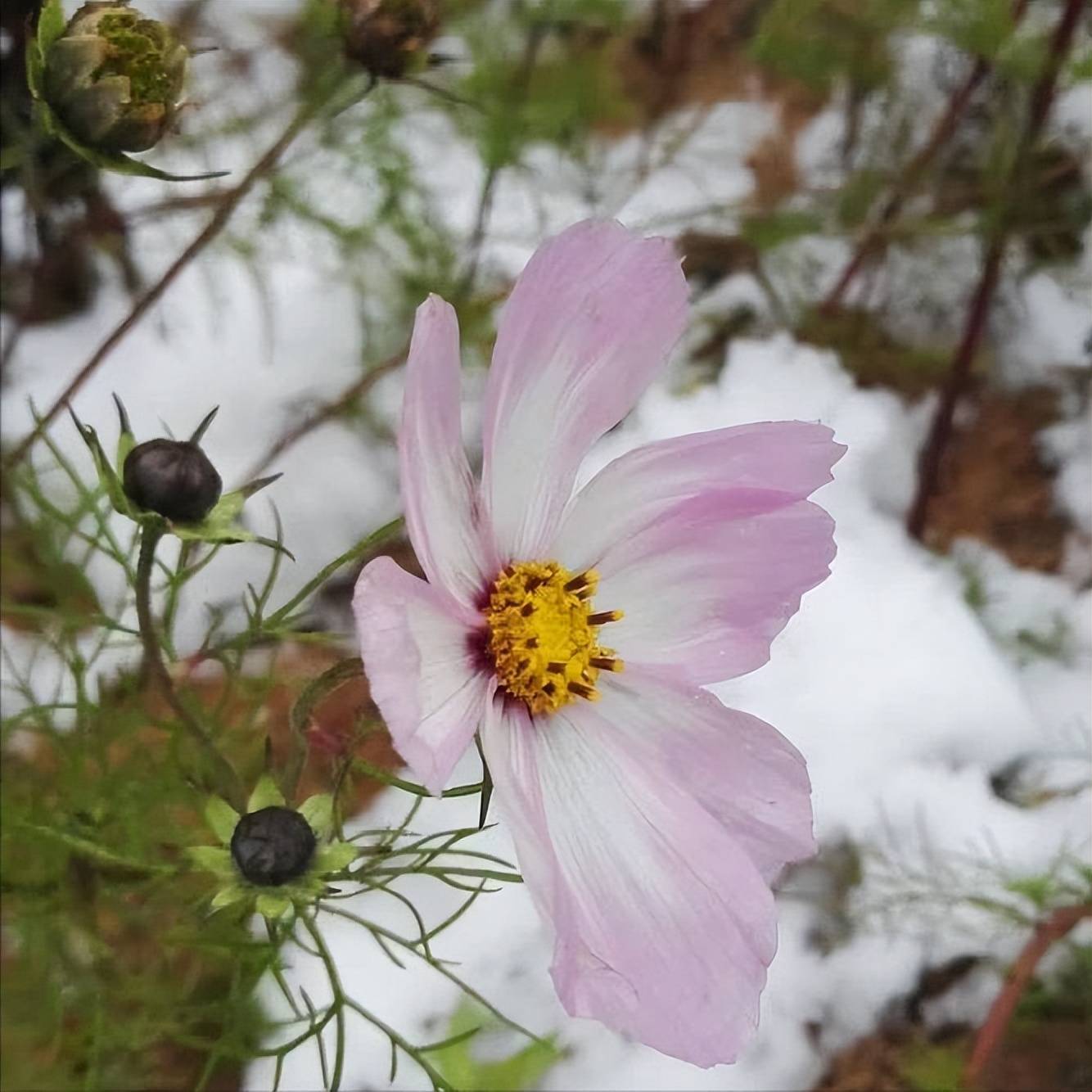 的确,山上下雪,山下下雨,从昨天晚上到今天早上一直未停,从山下看山上,还是云遮雾罩。