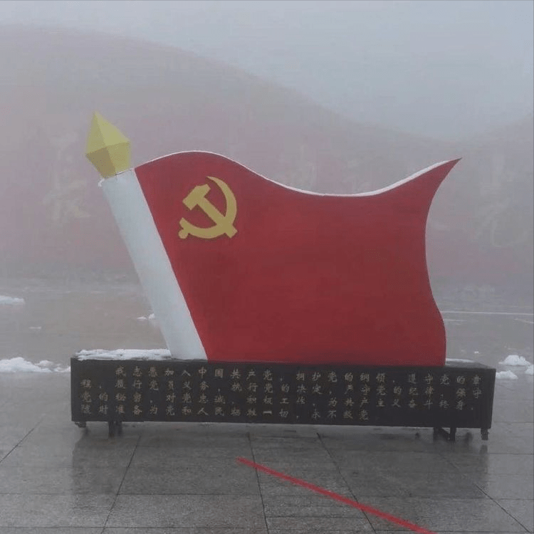 走出大厅,广场中央一面雕塑的红旗吸引了我,那上面写着我们每个共产党员都必须牢记的入党誓词。