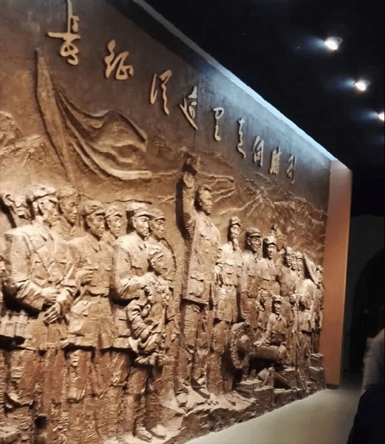 踏着地上的积水,迈上高高的台阶,进入了宏伟宽大的“六盘山红军长征纪念馆”。眼前呈现的实物、雕塑、图片、文字说明、模拟现场,生动再现了80多年前红军在这块热土上战斗和生活的场景,感动着络绎不绝地前来参观的人。