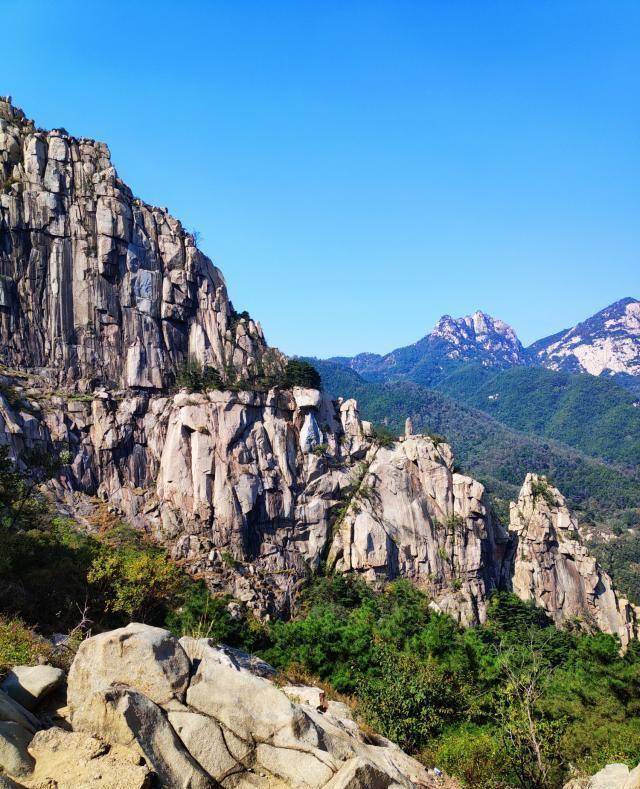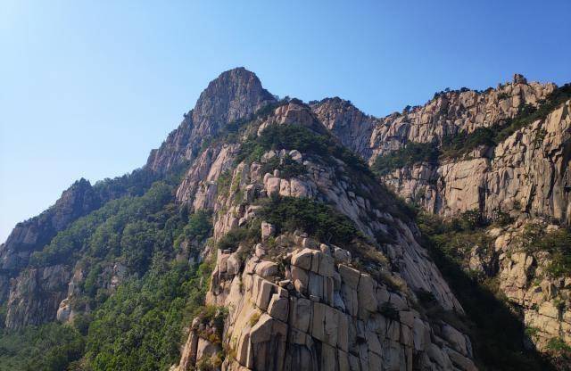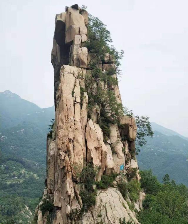 这是扇子崖侧面,孤立奇峰,矗立在泰山后山特别惹人注目