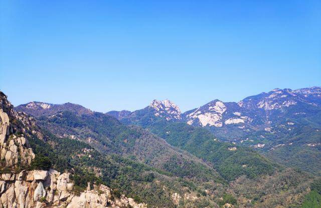 在顶峰可以清晰的看到对面的泰山,最高的就是泰山的玉皇顶