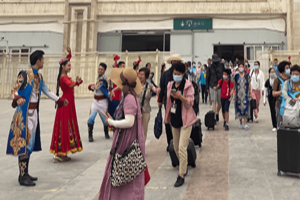 天津北方网讯:满载着328名游客的“津和号”旅游专列,昨天抵达新疆和田,游客们在新疆歌舞和一片欢声笑语中迎来大美和田之行。这是2023年天津开行的“津和号”首个旅游专列,丰富的旅游活动和全新的旅游线路,将让游客体验一场令人难忘的南北疆精华之旅。