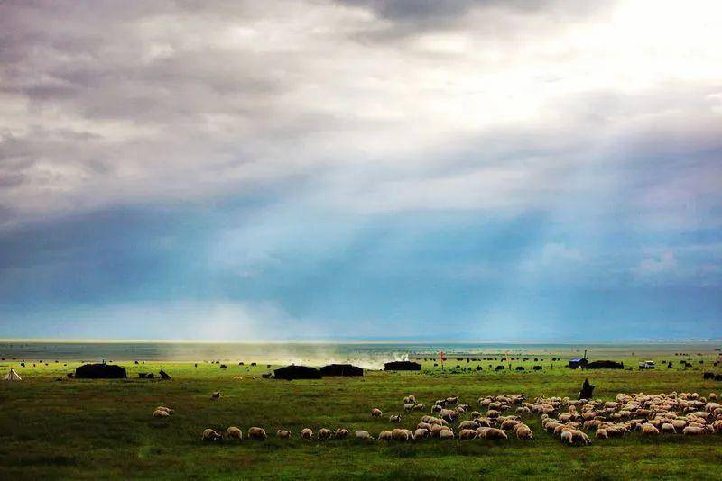 辽阔的草原连上天际,放眼望去,杳无人迹,只偶尔从远处传来一两声狗吠,风懒懒地、缓缓地在草海上移动着,无声无息。