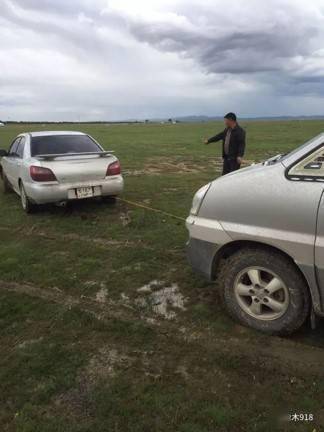有一次我们从后杭爱省会阿尔拜赫雷市,去一个相距四十多公里的温泉胜地,出发时天已摸黑,又正值雨后,所谓的路完全是原始的草地,只是被车辆压多了就成了路,雨后的草地看着好好的,可车轮压上去就被陷住了。