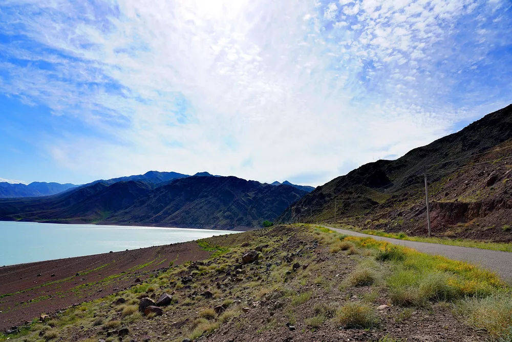 在Buyryuk和卡拉套之间的山间盆地,有一面大地的镜子——Tuzkol湖。