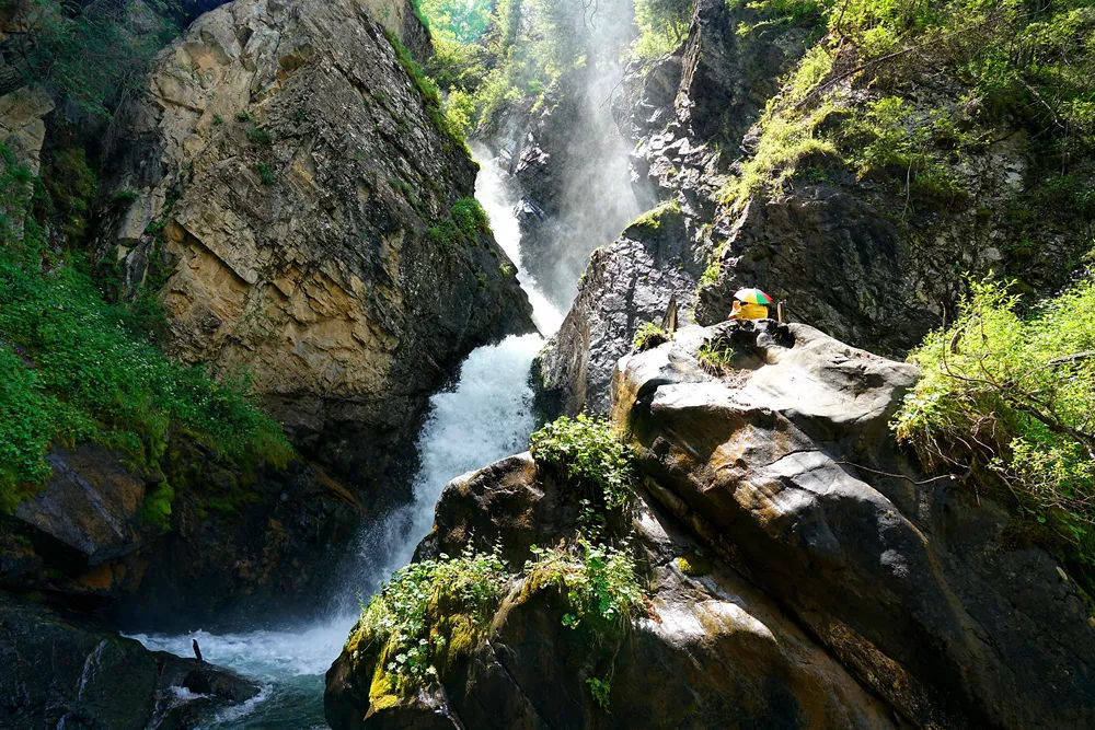 随着3小时的徒步旅行结束,Karagaily河上的熊瀑布便呈现在我们面前。初见熊瀑布就为之一叹,虽然高度仅为约40米,不如其他知名瀑布雄伟壮观,但它特有的精致与秀美是别处所不具备的。
