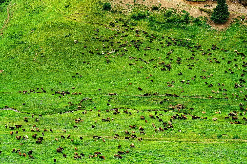 Shalkode valley是转基因畜牧业的中心。在雪山群峰的围绕中,一片绮丽的自然美景展现在人们的面前,无边的青青草原在这里平铺开来,就像风平浪静的蓝色的海洋。雪峰、绿林、繁花,它们就像绣在绿色缎面上的彩色图案。这绿草如茵的世界,让人豁然开朗。
