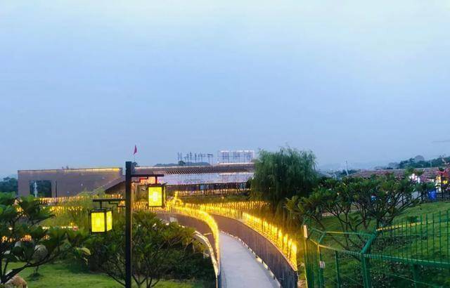 并在园区精心打造的夜光稻穗廊桥前