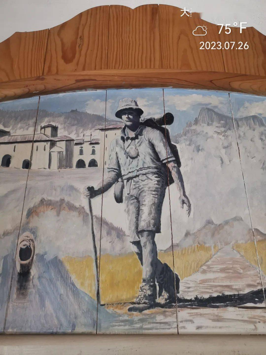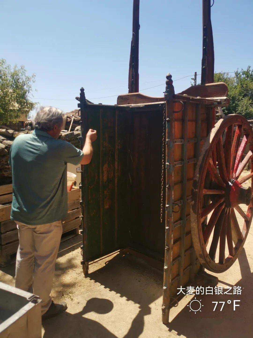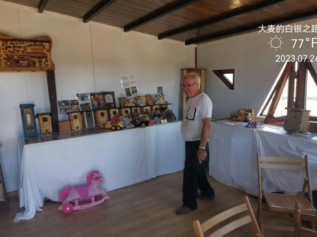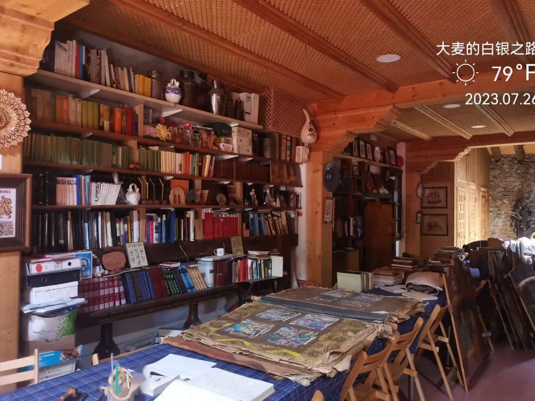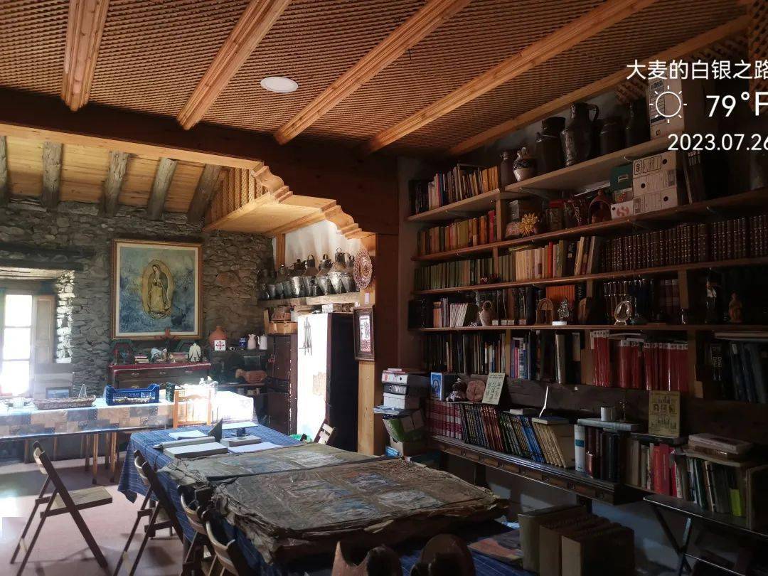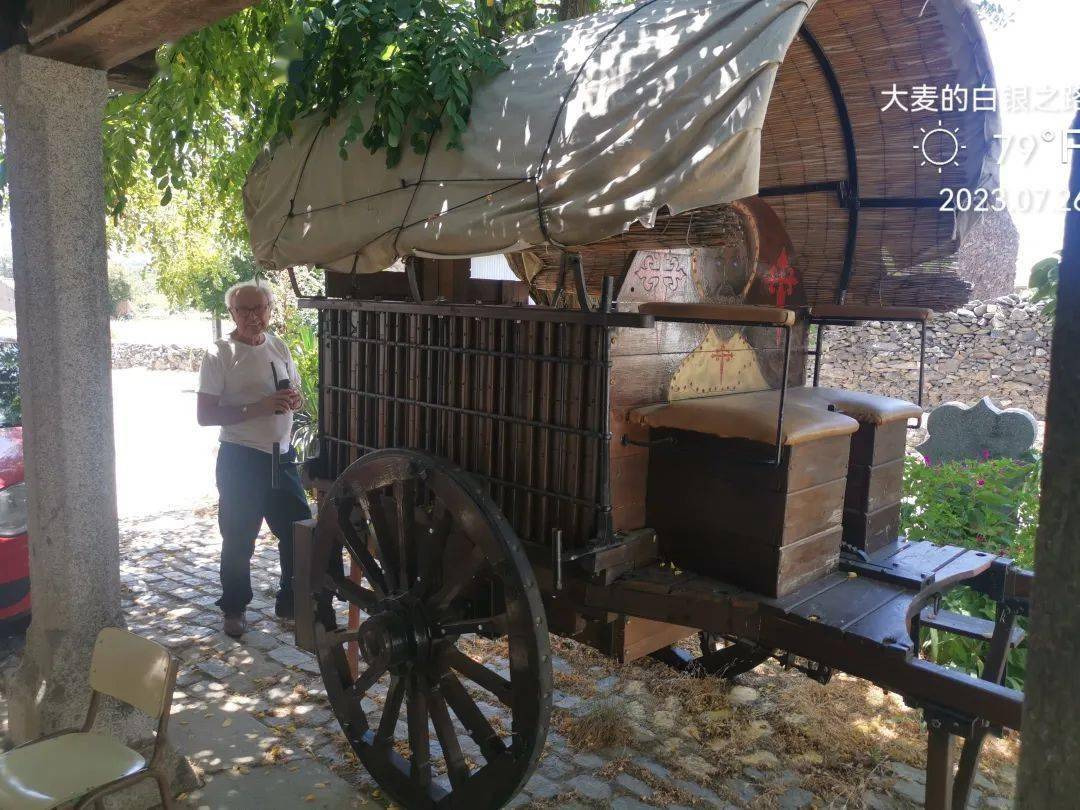 这位正在刷桐油的,是这里主事的牧师。Albergue门口还有一辆固定陈列,看来他们是专门玩老式马车的。