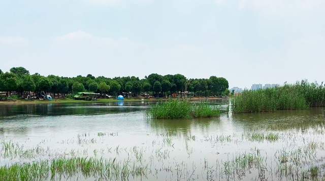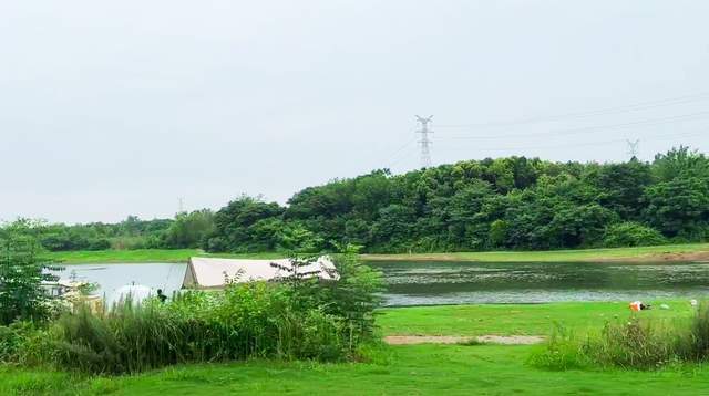 来到牛尾湖畔,首先看到的是绵延的自然风景带。遇到下雨的天气景色最好,一来下雨的时候会稍微凉爽些,二来下雨之时,没有光线暴晒,在自动挡的镜头里,看到的画面会更加自然纯粹,尤其是植被的绿色看着极其鲜活,对应的草坪简直是自带美颜,唯一的劣势是下雨天不好露营。而在晴天,露营的地方只能是树荫下,一大块的草坪,看得到间断的橘色土壤,还有滨湖处的小河沟,流淌着清澈的水,随拍的话,至少有个焦点。