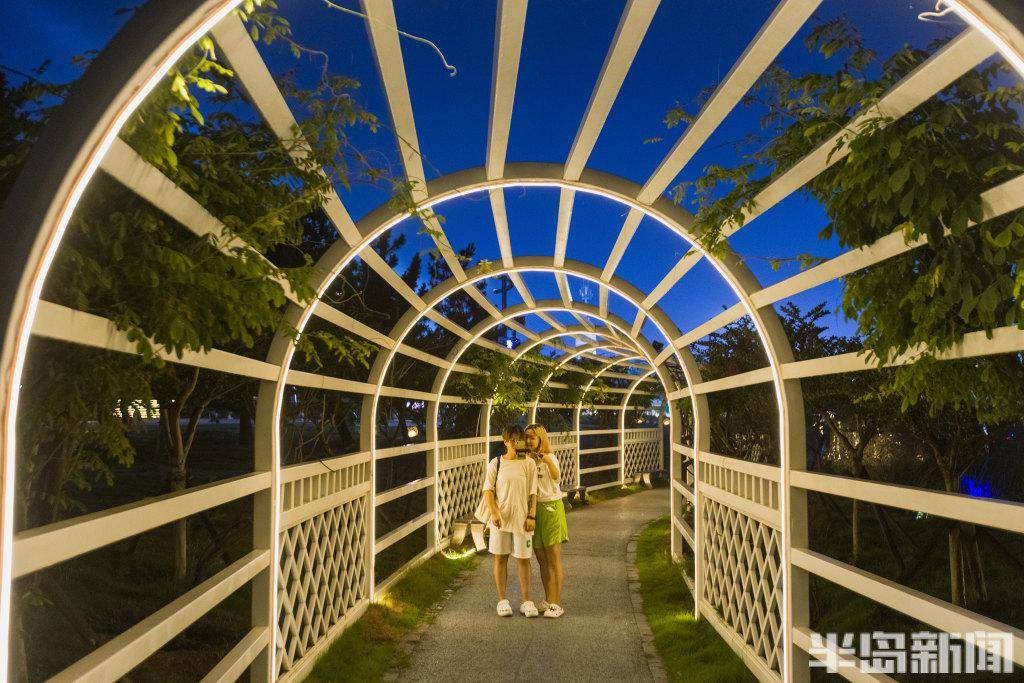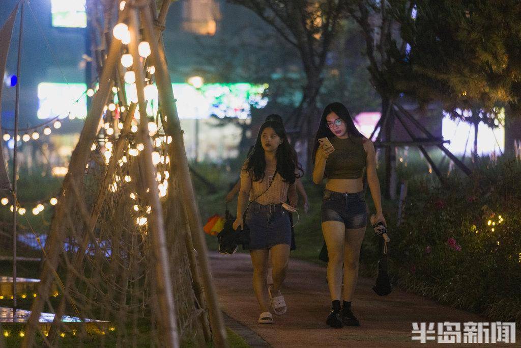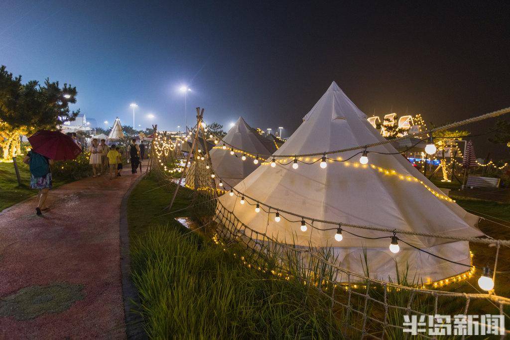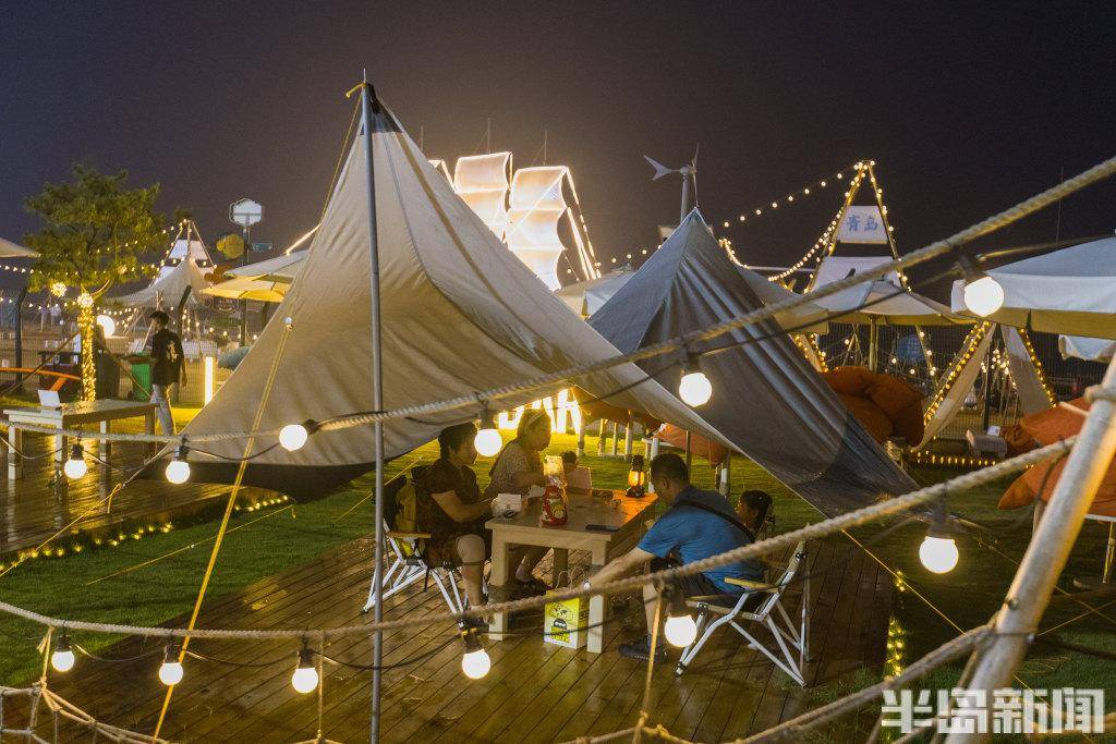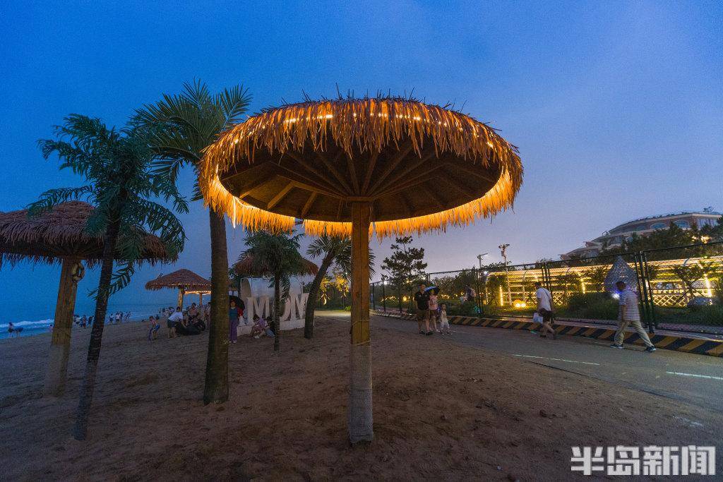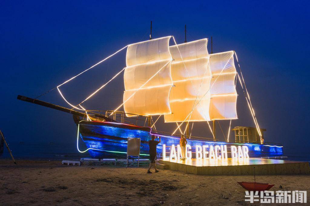 紧邻金沙滩啤酒城外的爱情海湾夜晚同样景色醉人。海滩上扬起风帆的大船亮起了迷人的灯火,仿佛正准备迎着月色踏浪前行。一些游客纷纷在这里拍照留念,用美丽的海滨夜色留下自己与家人、朋友们难忘的夏日回忆。