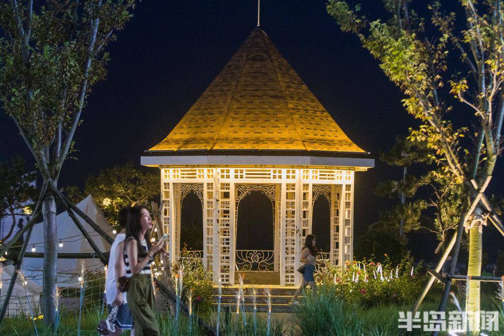 在时光海岸精酿啤酒花园里,不少游客徜徉在光影闪烁的海岸线小径中。夜幕之下,闪亮的玻璃观光塔、别致的海滨小亭、梦幻的景观长廊、温馨的酒吧帐篷……一处处动人的风景诉说着金沙滩啤酒城激情与狂欢之外的另一面诗意与柔情。