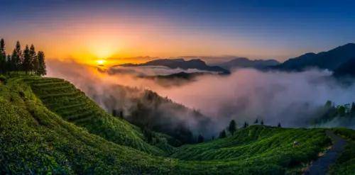 到复兴村,在云雾缭绕中看高山茶海,路过清代、民国时期遗留下的古老木屋,与当地人围着篝火跳舞,感受原汁原味的复兴锣鼓和羌楚文化;