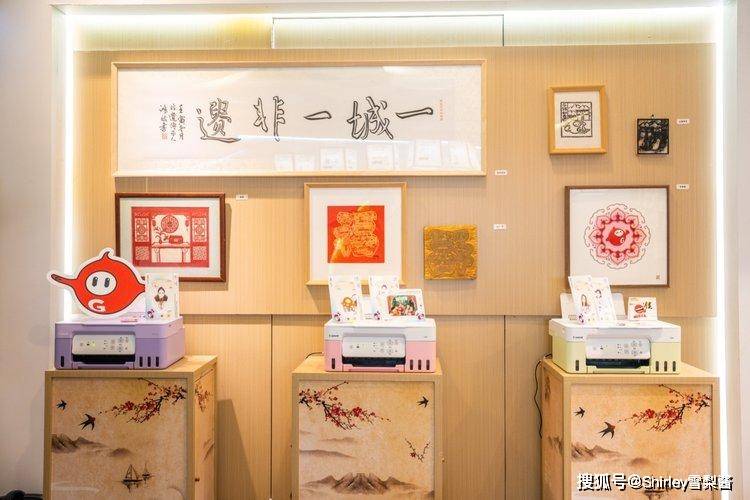 当天上午,有幸在B1层遇到了佳能与苏州博物馆西馆携手举办的“苏色生活佳”活动。活动现场布置延续了博物馆的国风雅韵,苏州园林的元素到处可见,具化独属于吴地的审美风情。马卡龙色系的小G灵家族打印机,也成了活动会场最亮丽的一景。