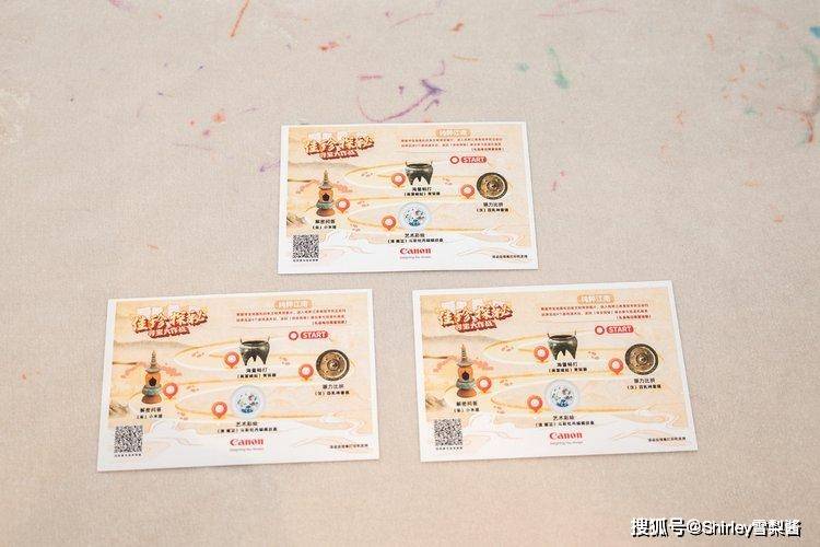 佳珍探秘是个寻宝活动,大致是用手机扫码后就能领取由佳能打印机打印的任务卡,然后进入纯粹江南展馆,依次找到任务卡上的四件文物、并在手机上完成闯关游戏。四个文物全部解锁后,就能获得扭蛋一个,里面有一份惊喜小礼物。