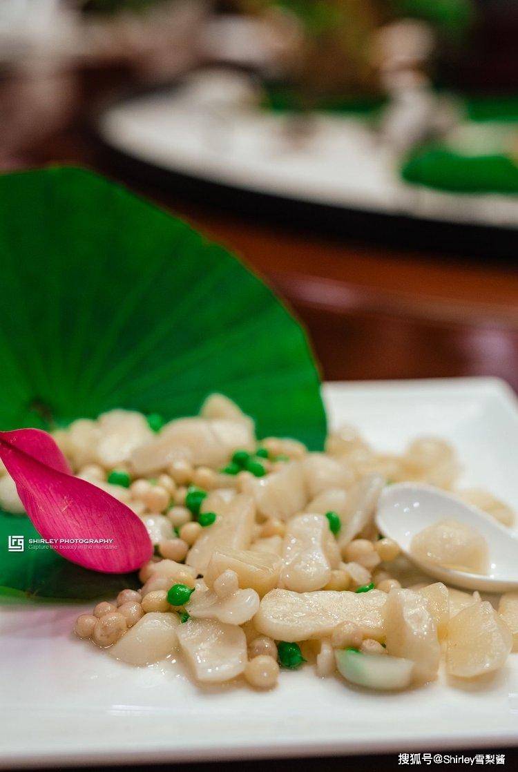荷塘小炒,荸荠的清脆、菱角的甜嫩、鸡头米的韧糯…水八仙的成员撑起了这道苏州特色菜肴。荷花与荷叶的自然装饰,在上桌的那一刻便被清香俘获。