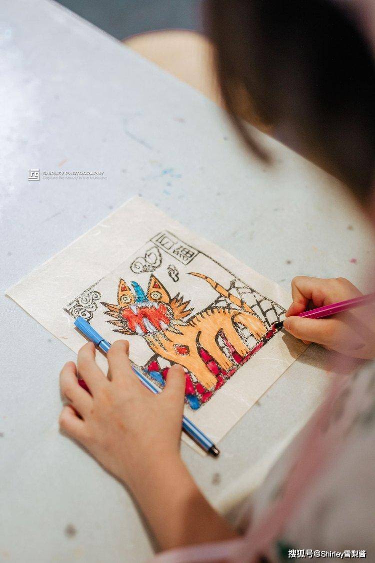 现场的小朋友们通过抽签的方式,领取不同图案的拓印木板。使用老师事先准备好的墨水与刷子,就可以亲自动手制作甲马了。虽然看老师操作很简单,但是蘸取墨水的多少,把墨水刷在板上的速度,拓印时的力度都会影响最后的成品效果。亲自操作一遍才知道,所有的非遗手作其实都不简单。