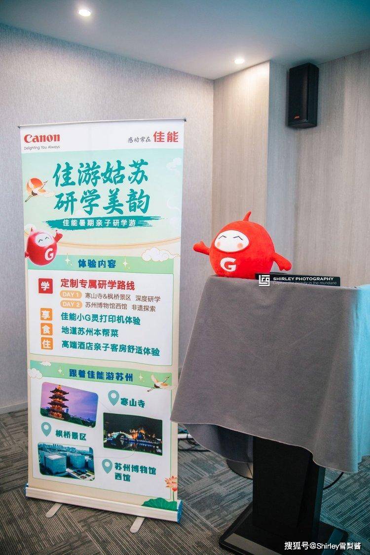 开营仪式会场的一边就是佳能小G灵打印机及周边产品,超高的颜值、色彩鲜艳的布置瞬间吸引了在场5位小朋友。这时大家还不知道的是,又美又能打的是佳能小G灵将成为下午旅行的“第6人”,陪伴小朋友们一起探寻苏州之美。