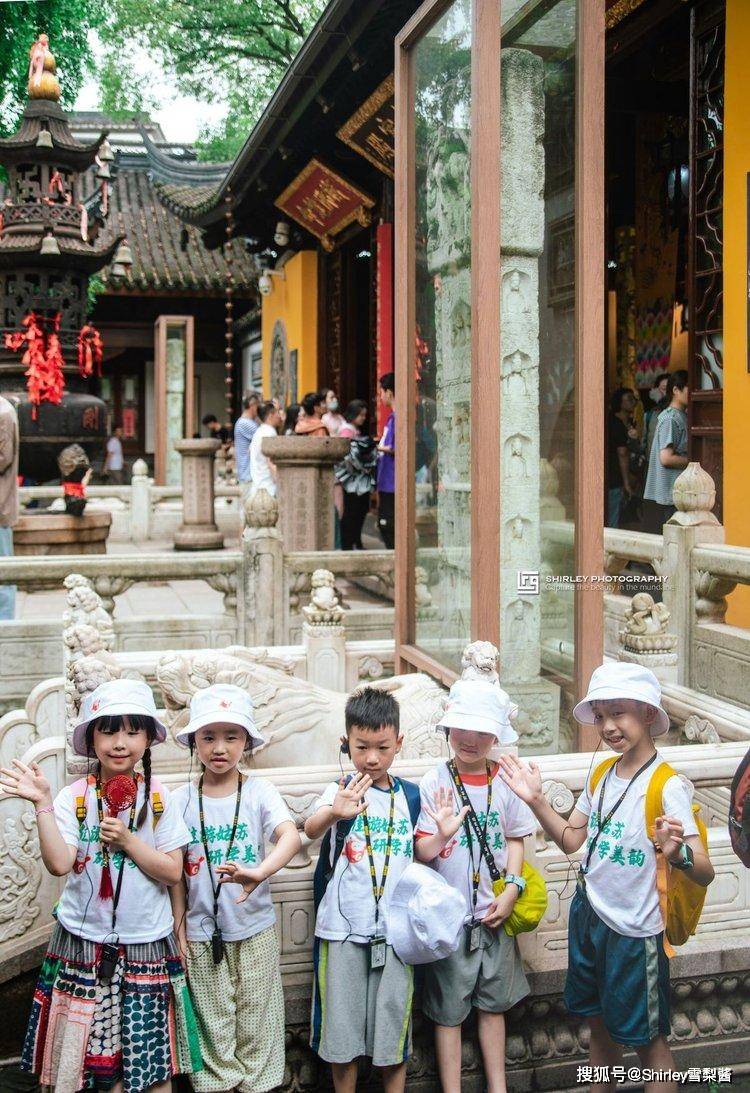 寒山寺多为清代建筑,而大雄宝殿前的赑屃石碑,是寒山寺留存不多的晚唐时代的古物。老师以深入浅出的语言,让孩子们可以理解赑屃是一种善驮重物的神兽,往往身上背有一块石碑。而屋檐正脊两端的神兽鸱吻通常用来镇水,长得像喷面条怪。这样一比喻,小朋友们别提听得有多专注了。