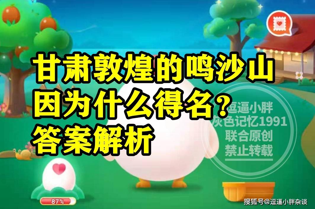 以上就是蚂蚁庄园题目:甘肃敦煌的鸣沙山因为什么得名?的答案解析,希望大家会喜欢。