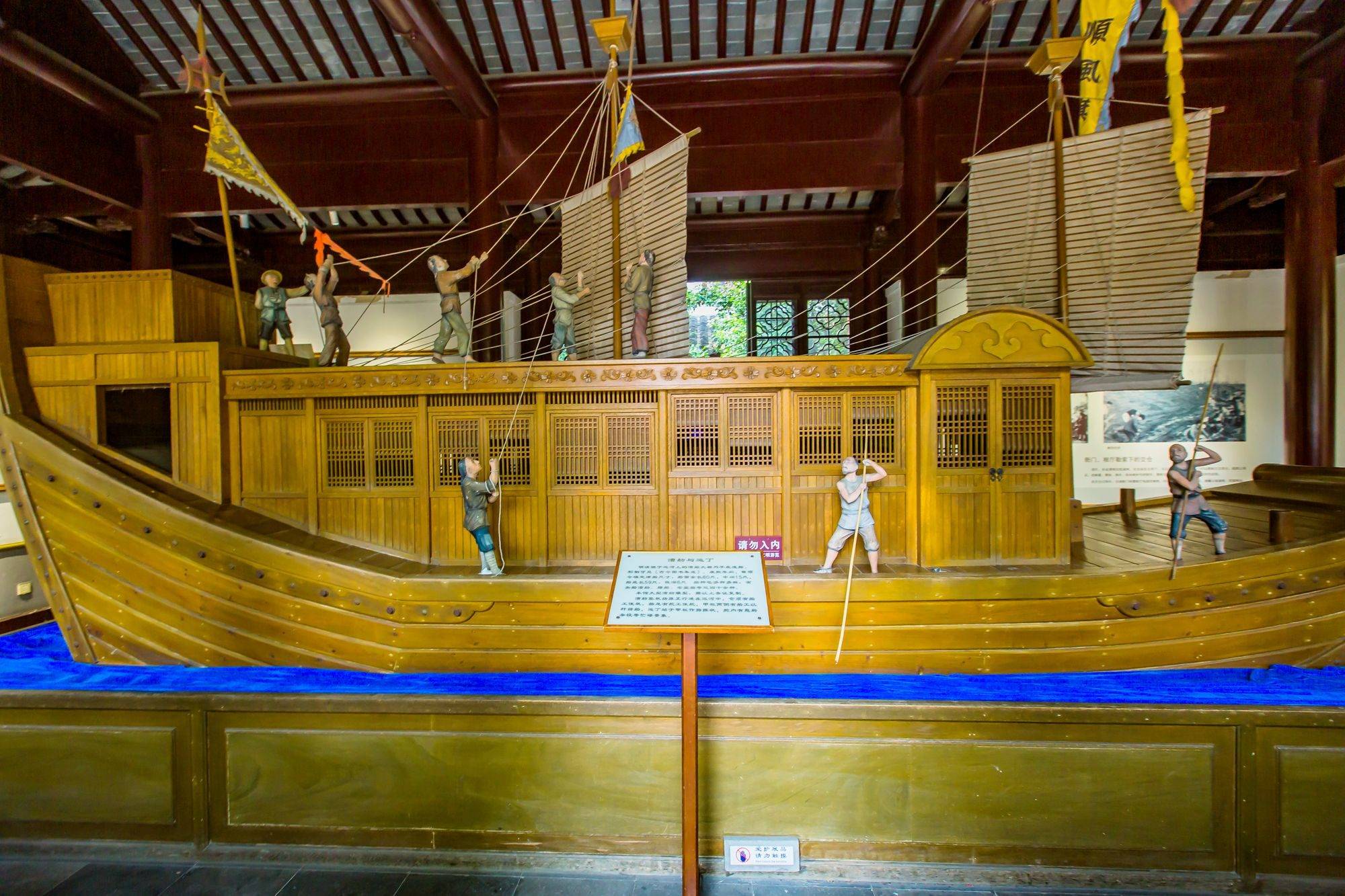 景区内的漕运展示馆单独成院,建筑既有明清的古朴,又不失江南的秀气。馆内有4个陈列室,分别是漕运的起源、漕运与大运河、漕坊与运途和漕运与苏州。