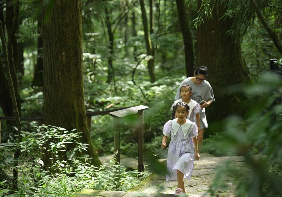 2023年7月11日,人们在杭州临安天目山风景区游玩。新华社记者 翁忻旸 摄