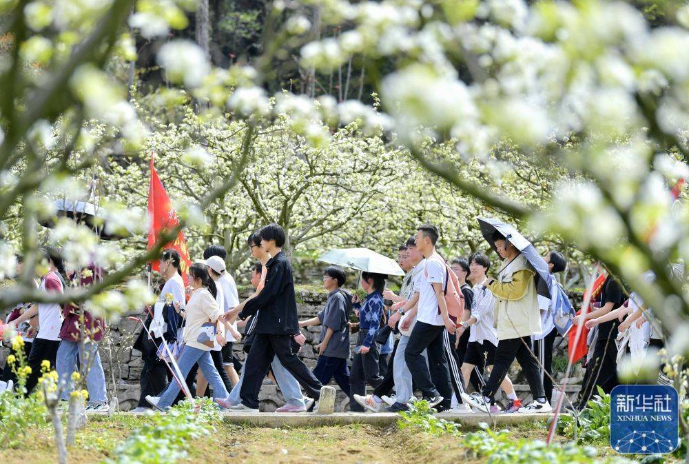 清明临近,湖北省恩施土家族苗族自治州宣恩县特色水果黄金梨进入盛花期,吸引众多游客进园观光游玩。近几年,当地依托黄金梨资源,开展研学游、赏花游、采摘体验游等农旅融合活动,带动乡村民宿、农家乐等产业的发展,为乡村振兴注入了新的活力。